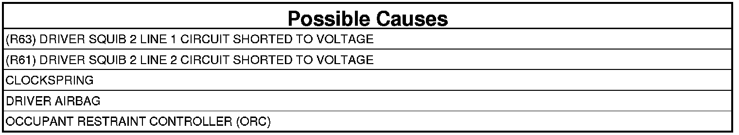 - Repair the (R63, R61) Driver Squib 2 circuits for a short to voltage.