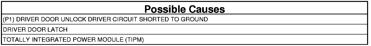 - Repair the short to ground in the (P1) Driver Door Unlock Driver circuit.