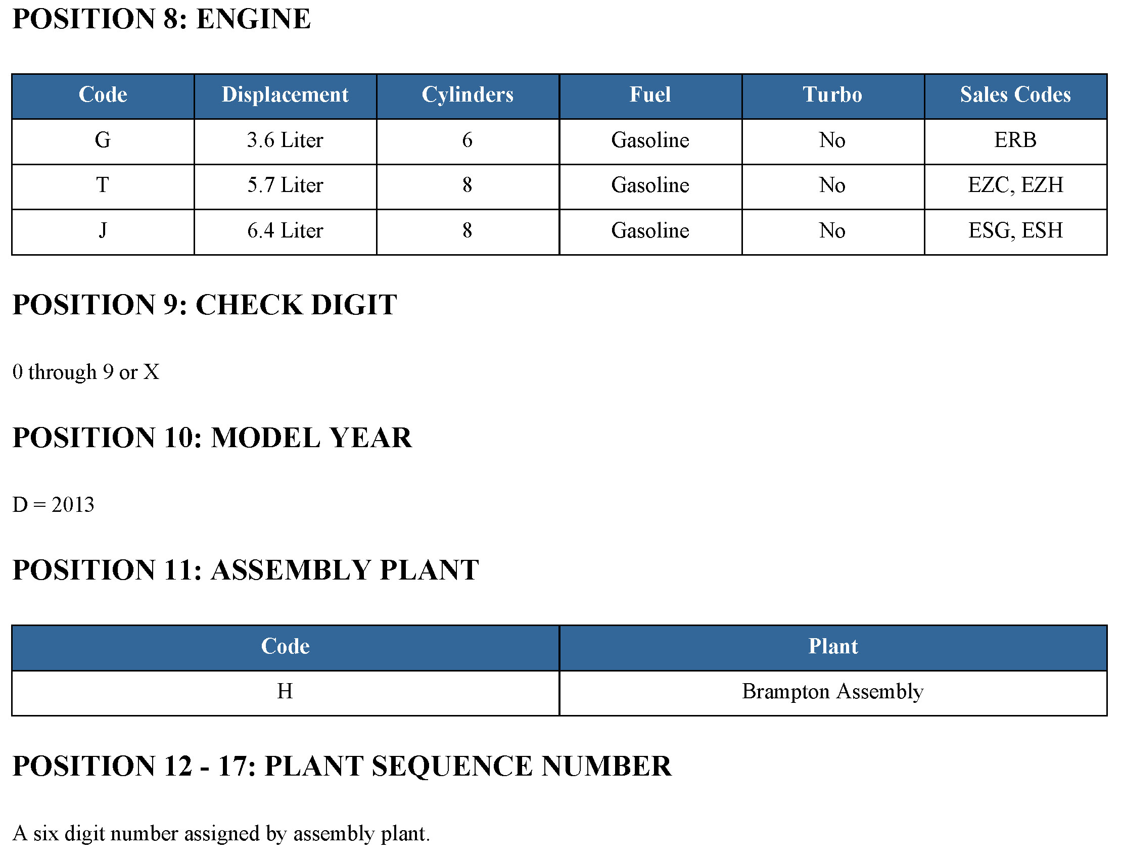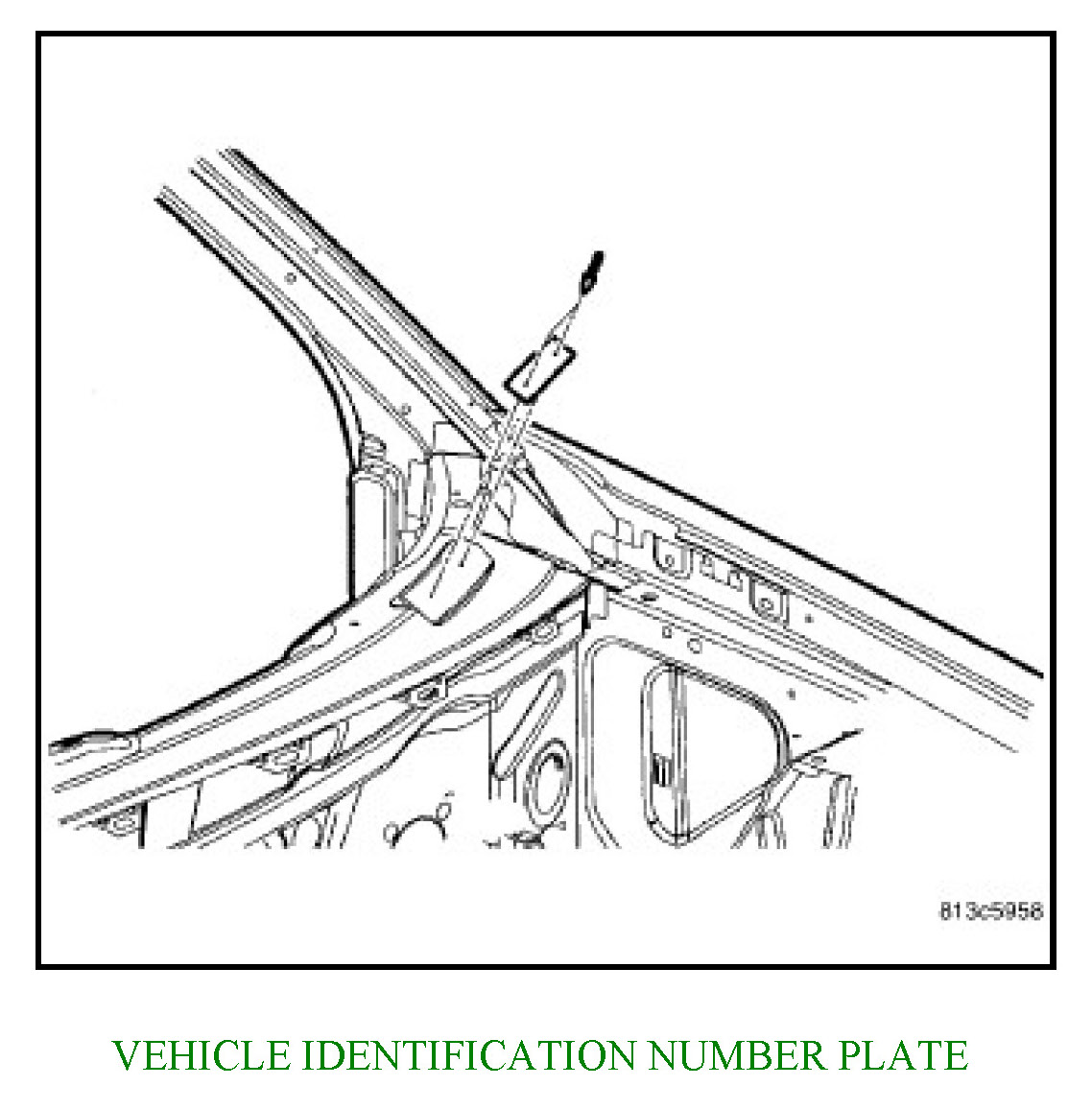 The Vehicle Identification Number (VIN) plate is attached to the top left side of the instrument panel. The VIN contains 17 characters that provide data concerning the vehicle. Refer to the decoding chart to determine the identification of a vehicle.