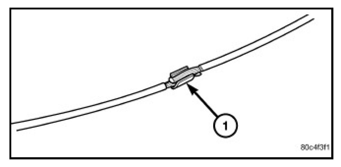 4. Using a crimping tool (1) (MOPAR Part Number 05019912AA, Miller Special Tool Number 10042 or equivalent) crimp the splice band and wires together securely.