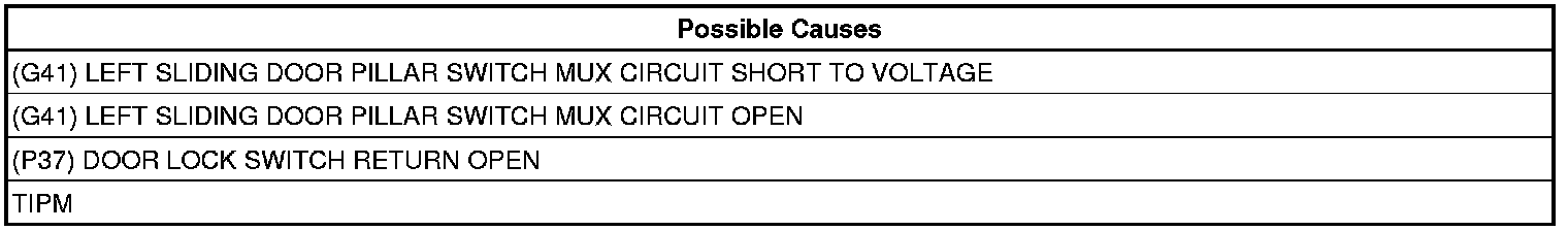 - Repair the (G41) Left Sliding Door Pillar Switch MUX circuit for a short to voltage.