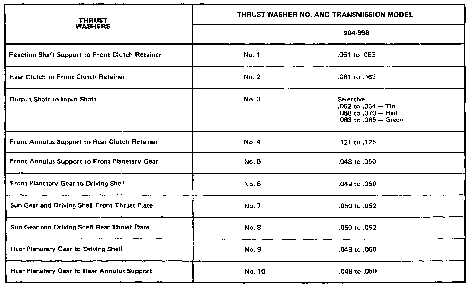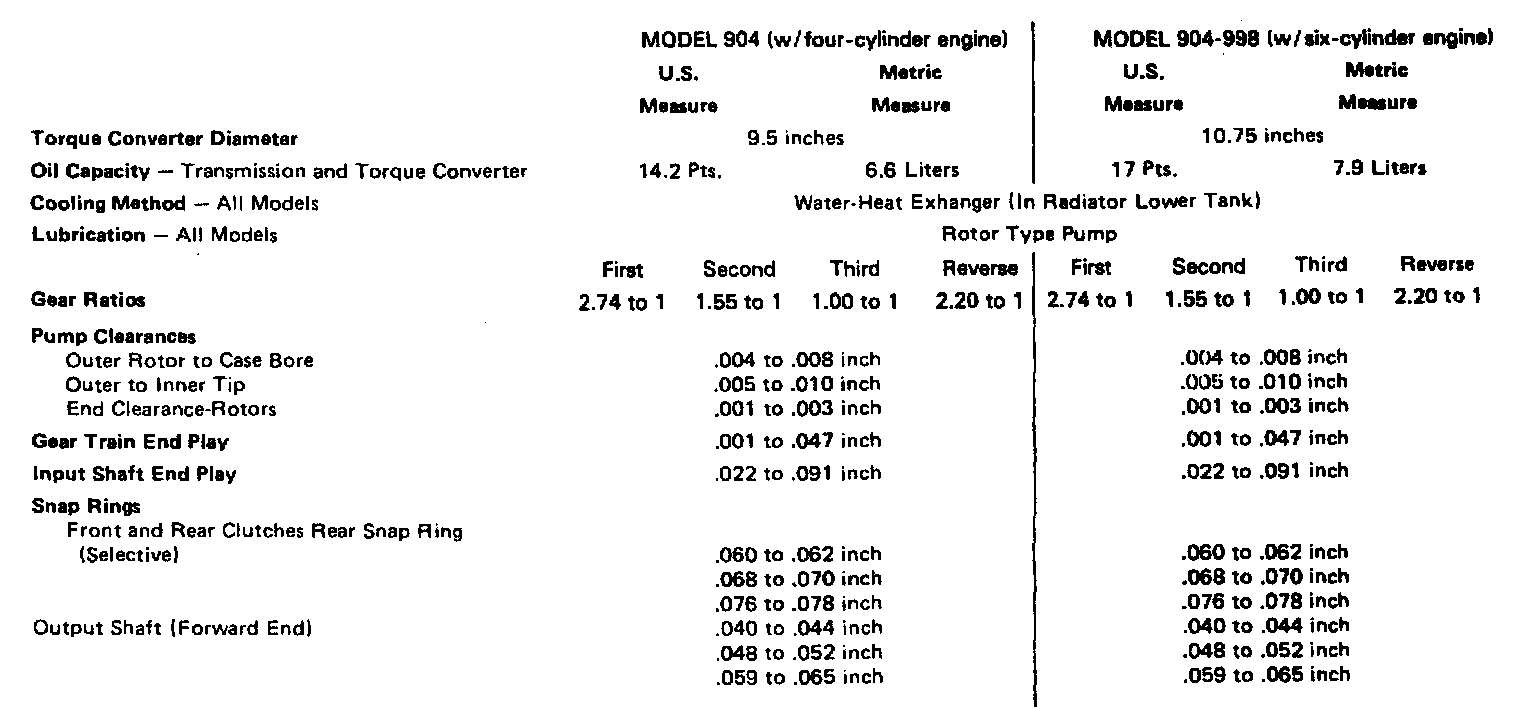 SpecificationsType *904, and 998 Automatic Transmissions.