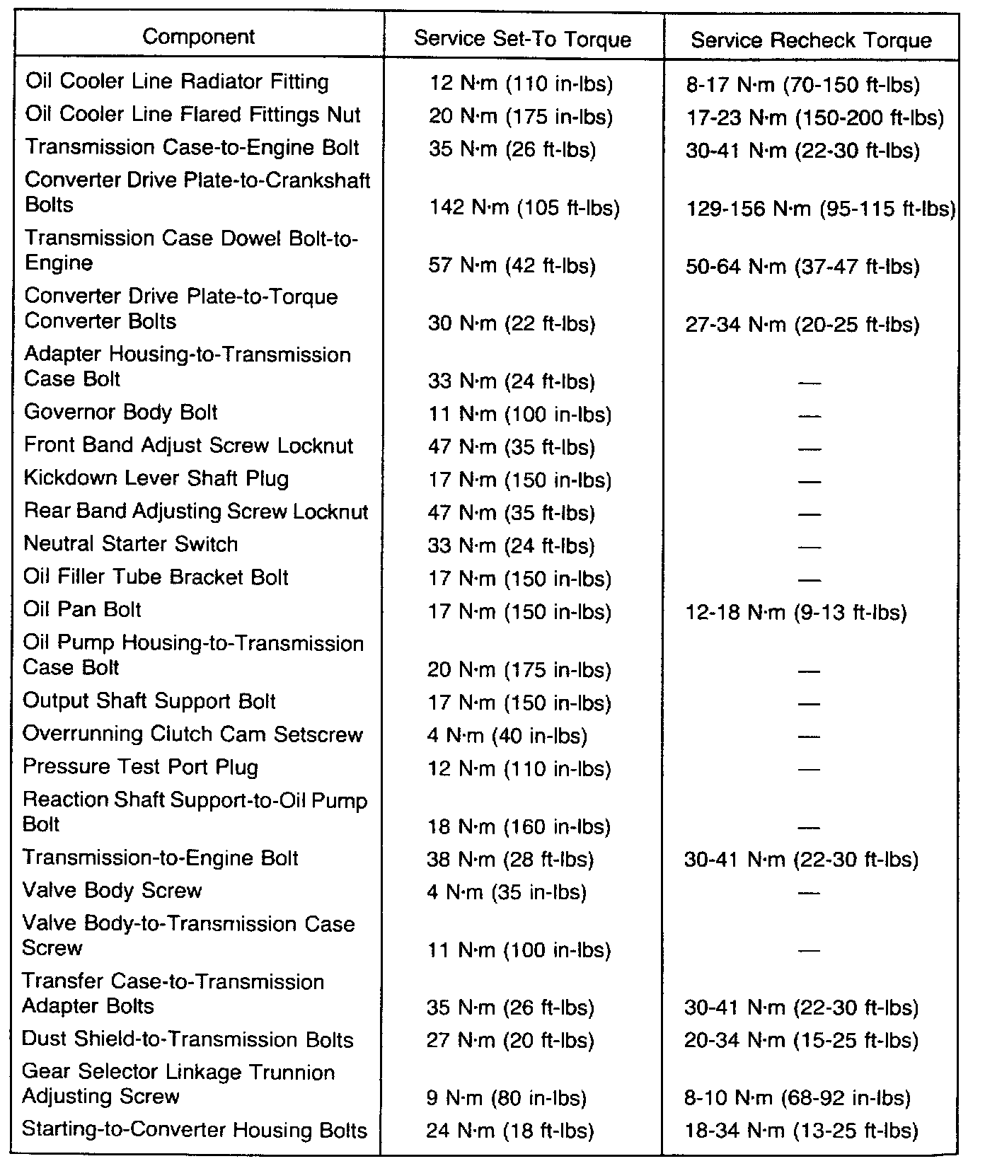 Torque Specifications