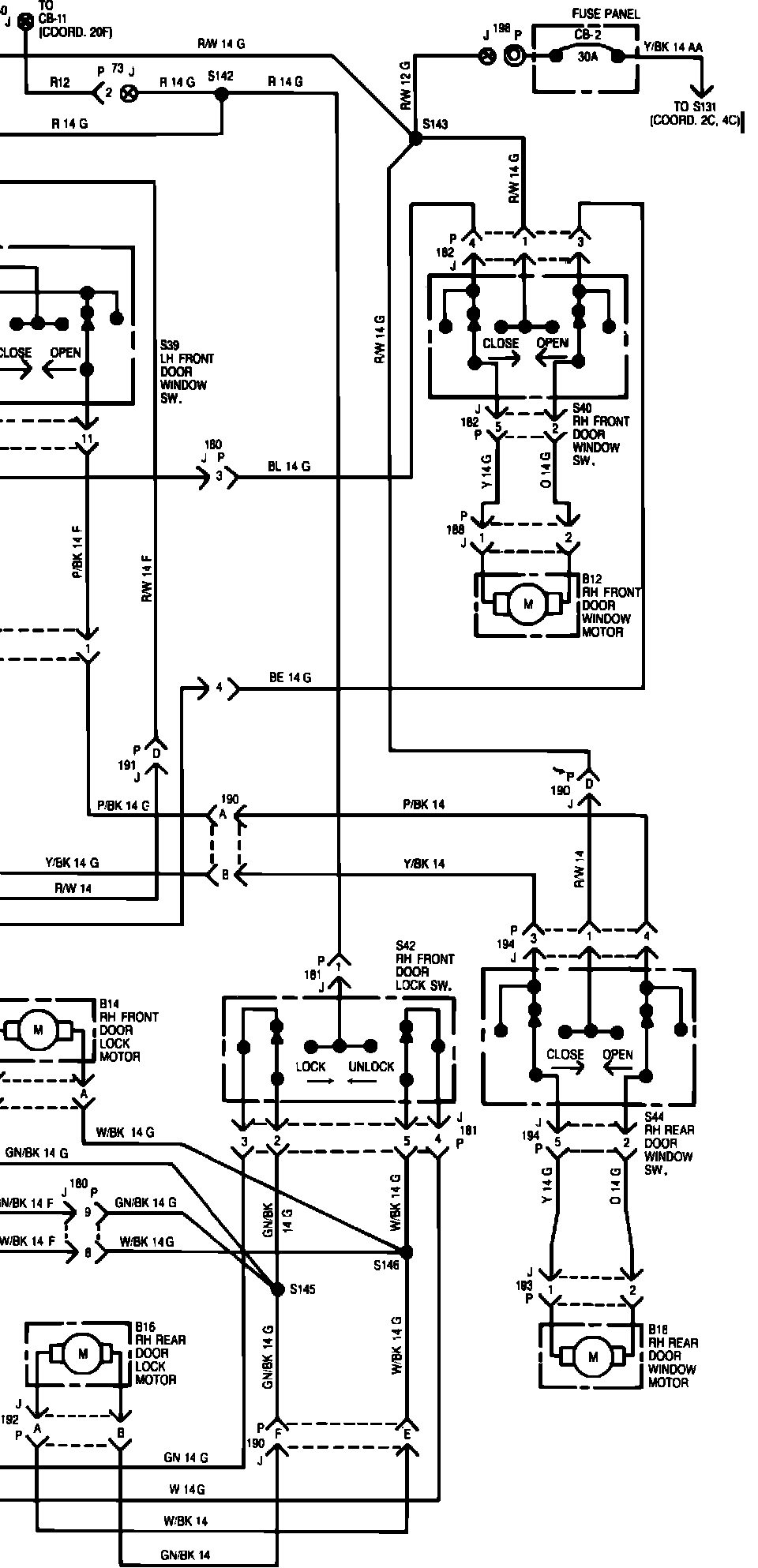 Fig. 25 Power Window & Door Lock Wiring Circuit (Part 2 Of 2):