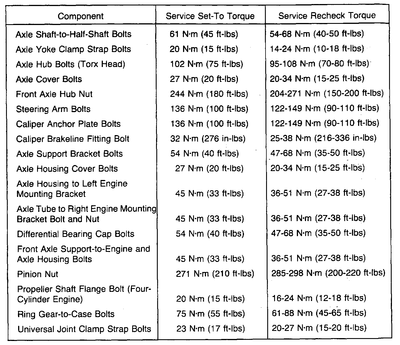 Front and Rear Differential Torque Specification