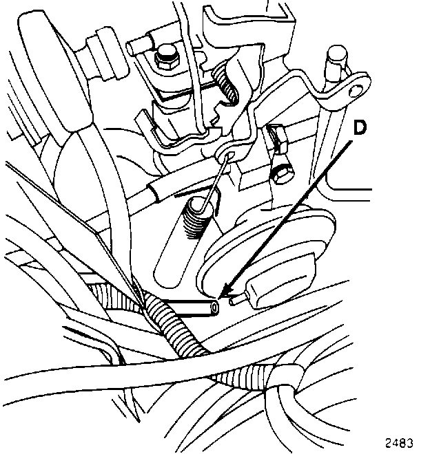 1. Disconnect and plug the EGR valve vacuum hose (D).