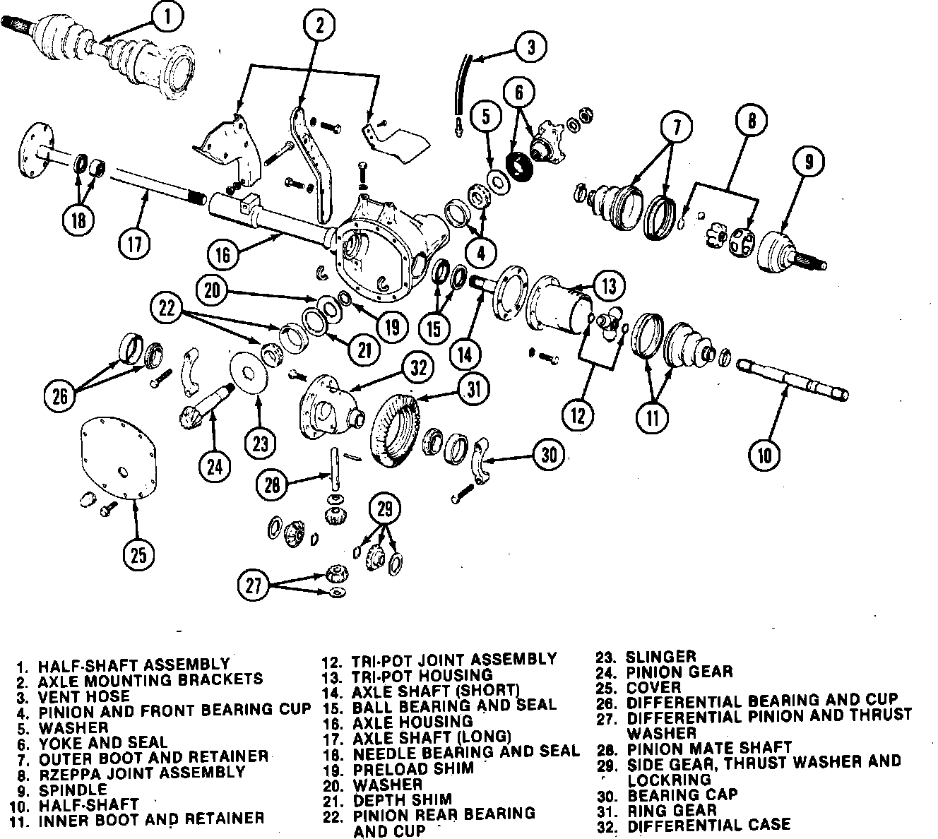 Fig. 6 Front axle assembly. 1985---87 Eagle: