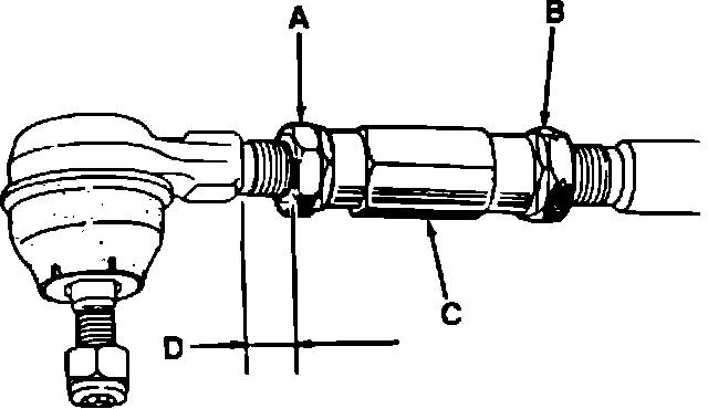 3. The number of threads (D) visible at each tie rod end should be approximately the same.