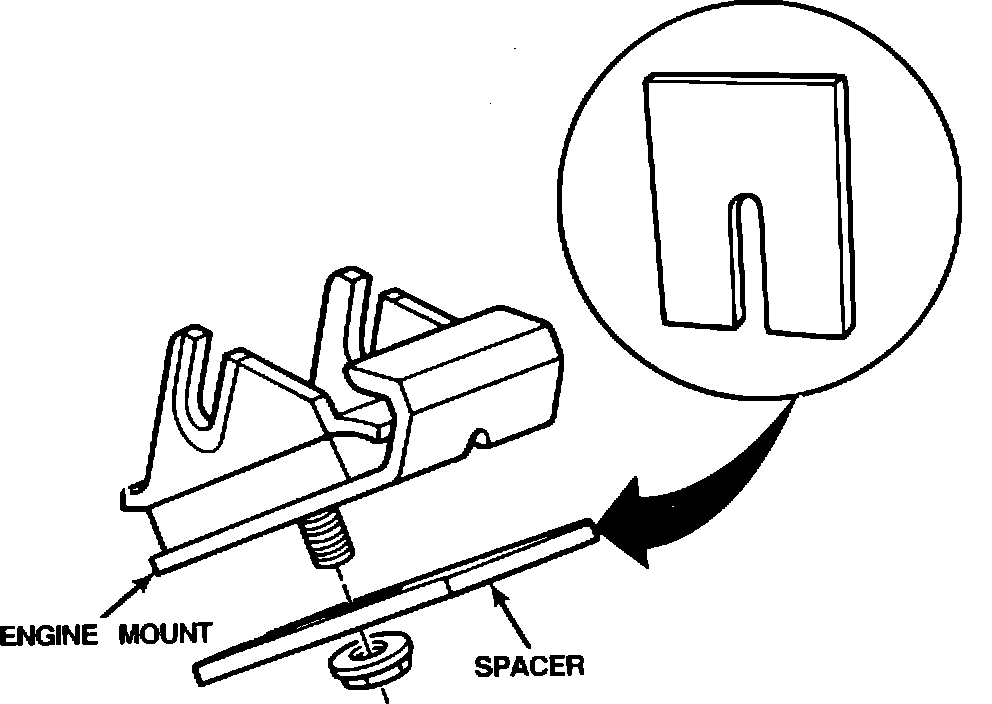 3. Raise the engine enough to install the spacer under the right engine mount. The spacer must be placed so that the opening of the slot in the shim is pointed toward the center of the vehicle (Figure 1).