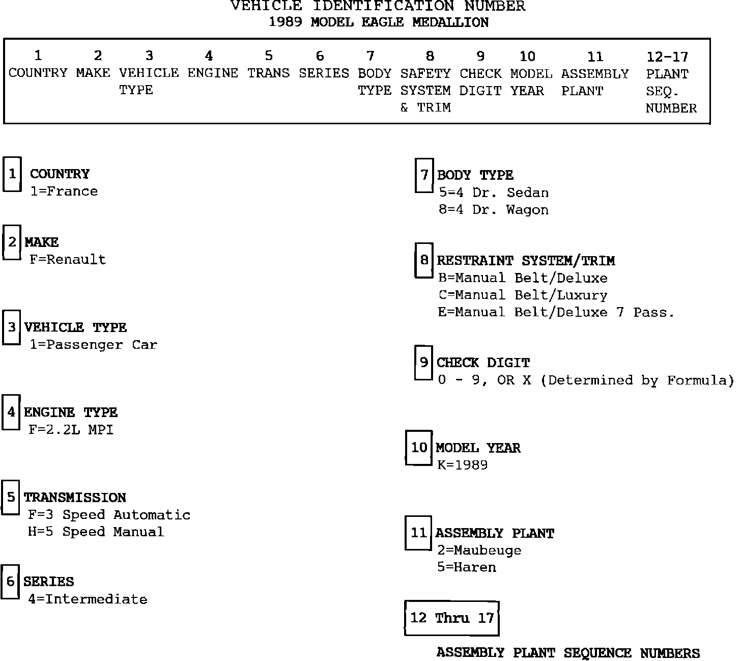 Vehicle Identification Number - Index
