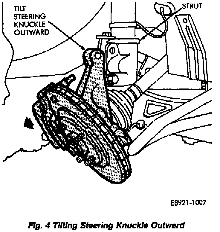 9. Loosen the steering knuckle-to-strut bottom bolts but do remove the nut from either bolt. Tap each bolt 3/4 of the way out of the knuckle and strut until the bolt splines are clear.