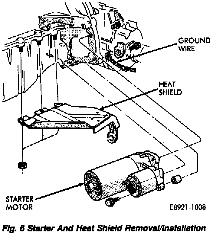 21. Install the starter heat shield. Tighten the heat shield attaching nuts to 11 N.m (96 in-lbs) torque.