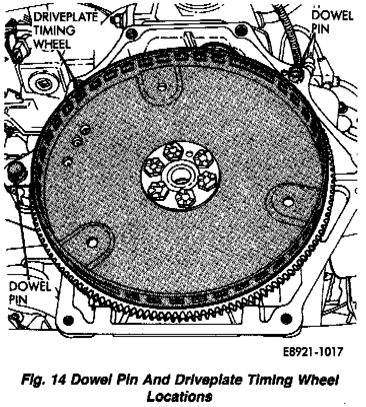Dowel Pin And Driveplate Timing Wheel Locations: