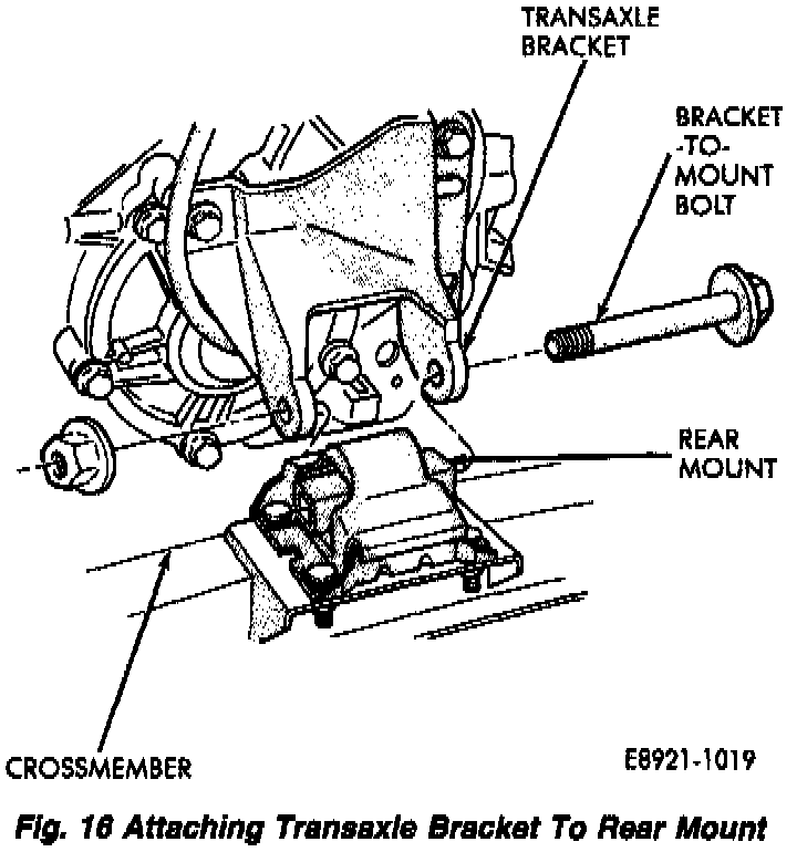 16. Install the transaxle crossmember but do not tighten the crossmember bolts completely.