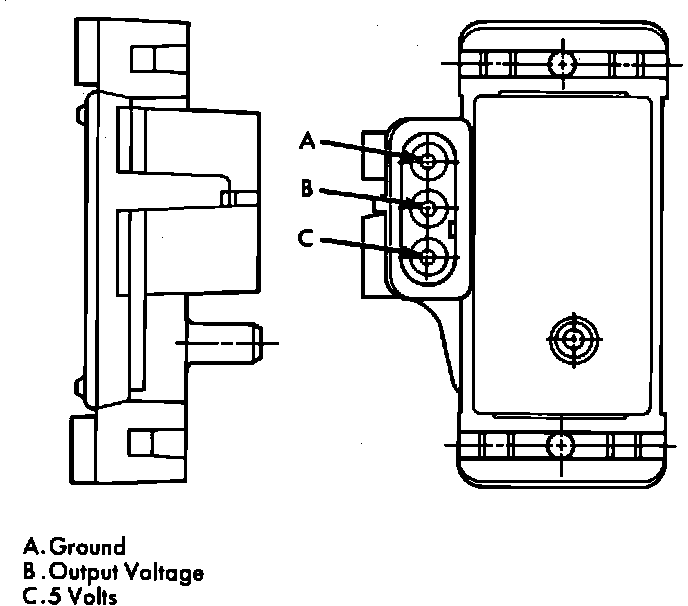 2. Measure the voltage present at the MAP sensor connector terminal "B" with the ignition switch ON and the engine OFF. Available voltage should be between 4 and 5 volts.