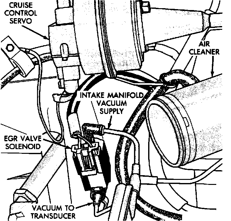 This solenoid is located on the left fender in front of the strut tower under the cruise control servo.
