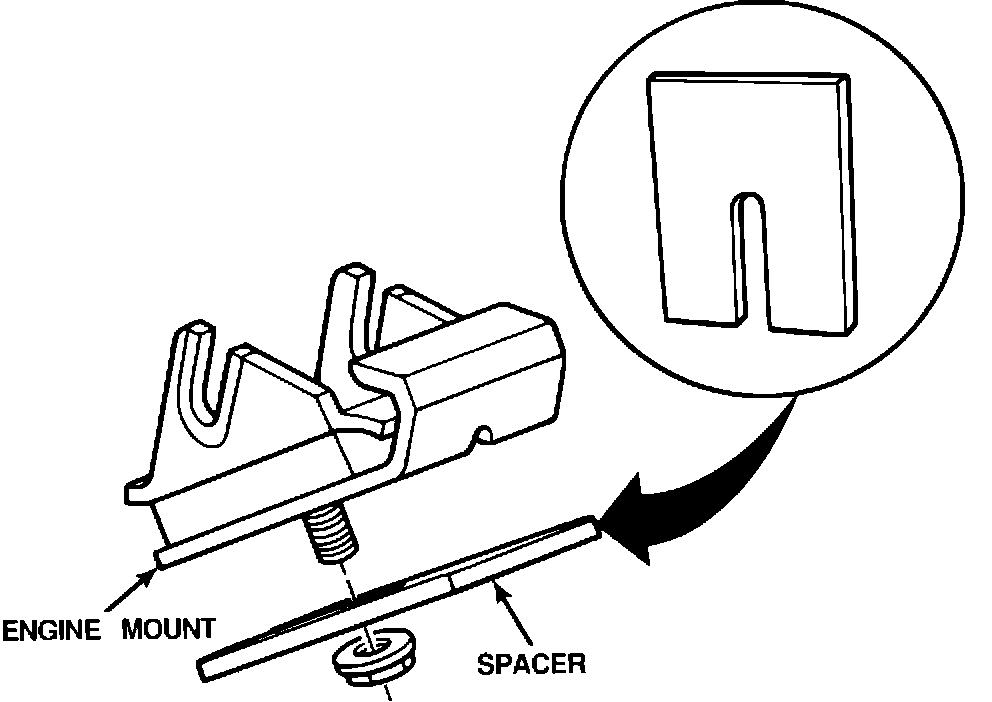 3. Raise the engine enough to install the spacer under the right engine mount. The spacer must be placed so that the opening of the slot in the shim is pointed toward the center of the vehicle (Figure 1).