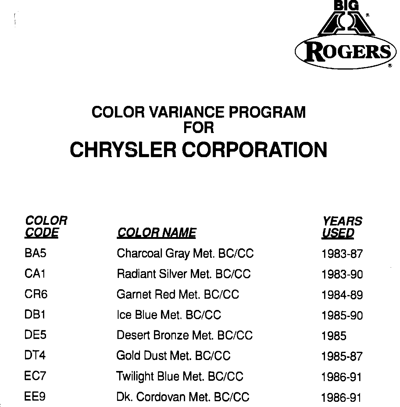 Paint - Vehicle Color Variance Program