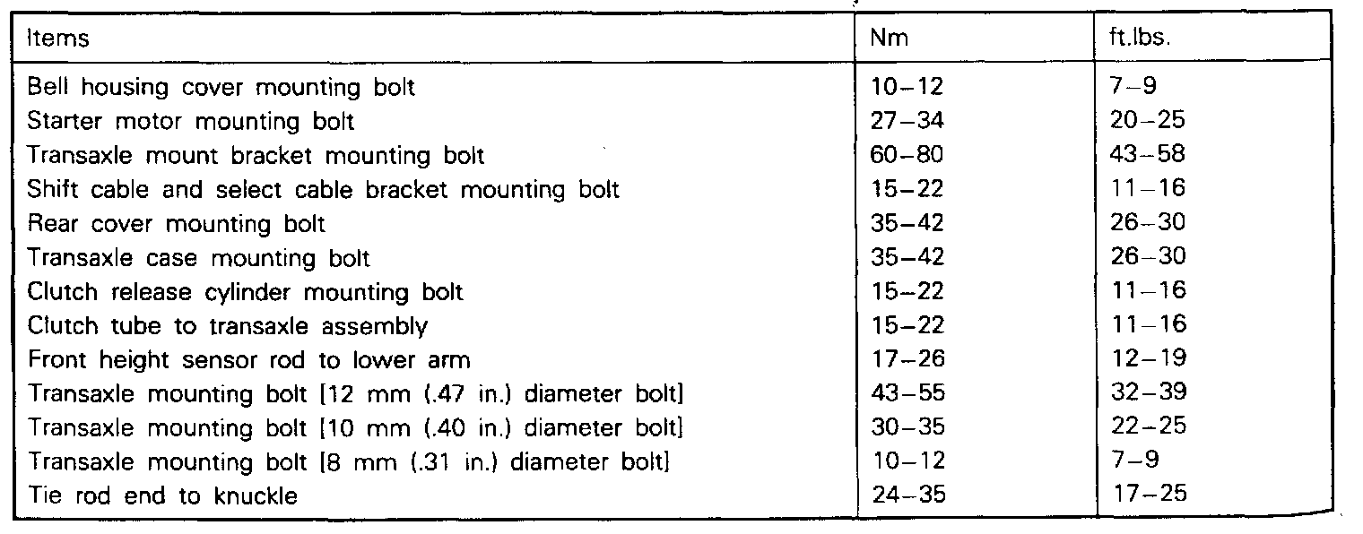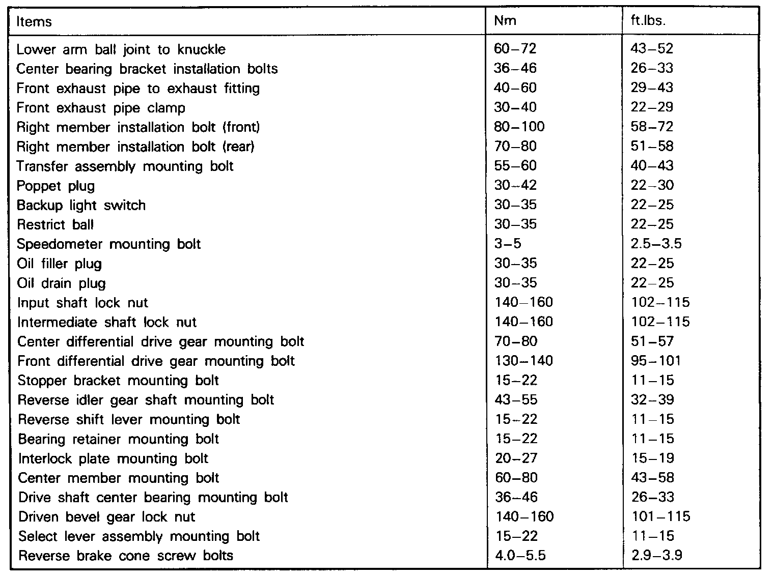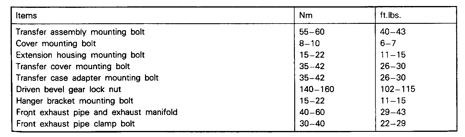 Transfer Torque Specifications: