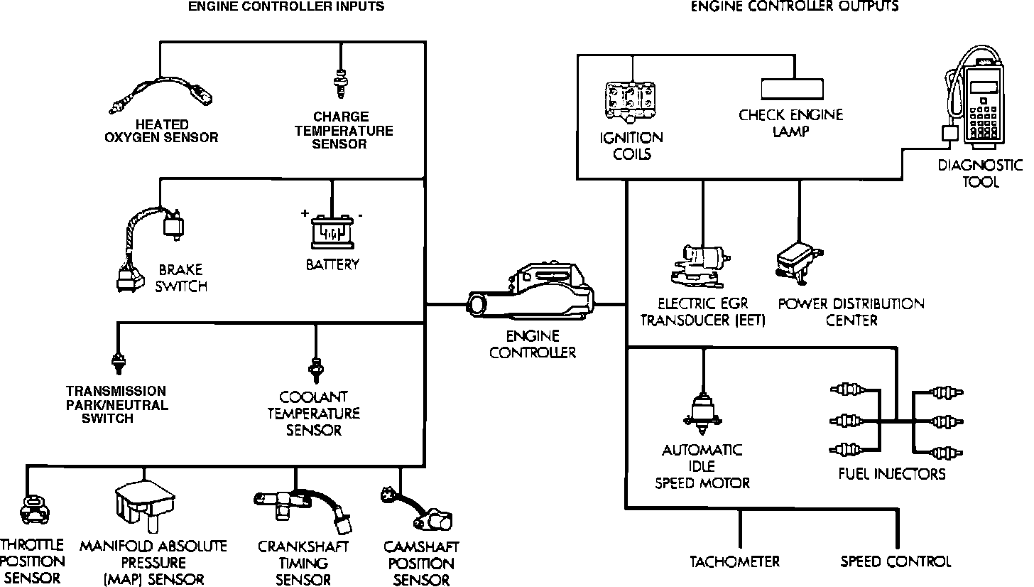 Various sensors provide necessary input for the SBEC II to function correctly (See list of SBEC II inputs and outputs below). In addition to these sensors, various switches and relays are used to carry out commands or outputs from the SBEC II.