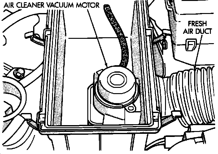 9. Check the air cleaner hot air door for obstructions and operation. Check the vacuum hose for proper connections, routing, and condition.
