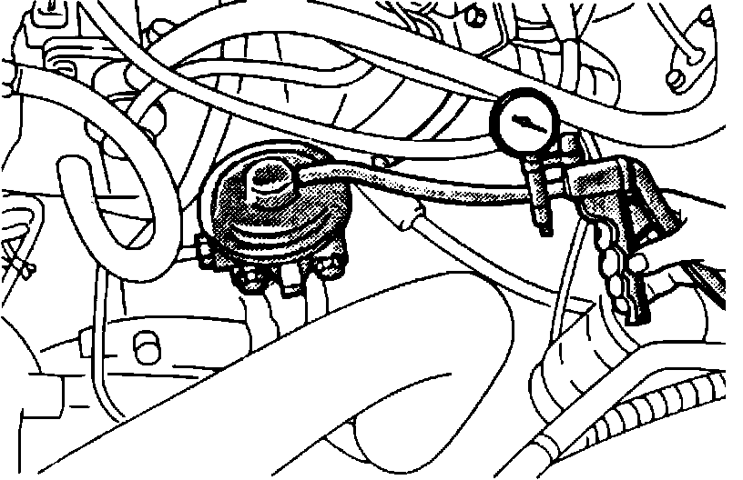 1. Disconnect the vacuum hose from the throttle body EGR vacuum nipple and connect a hand vacuum pump or gauge to the nipple.