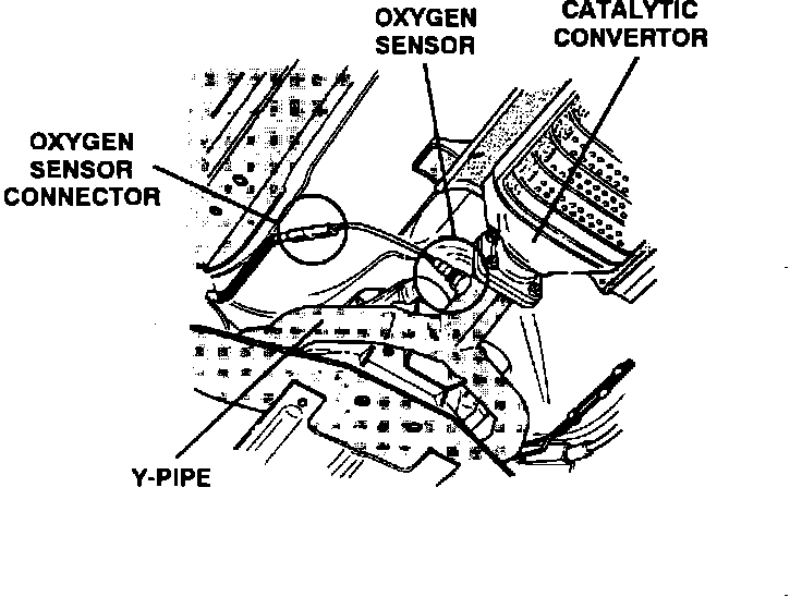 The Oxygen sensor and connector are located in the exhaust down pipe, in front of the catalytic converter.