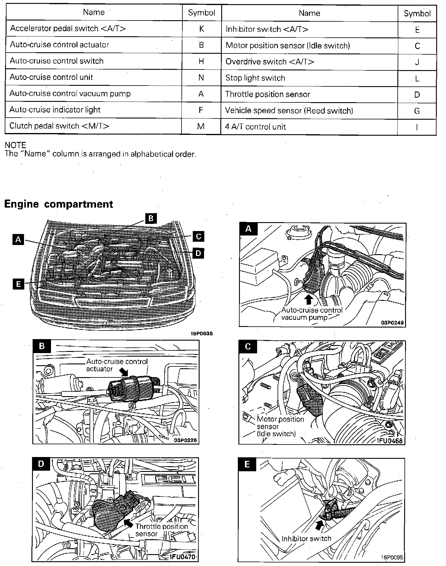 Component/Relay/Switch Locations (Cruise Control, Engine Compartment):