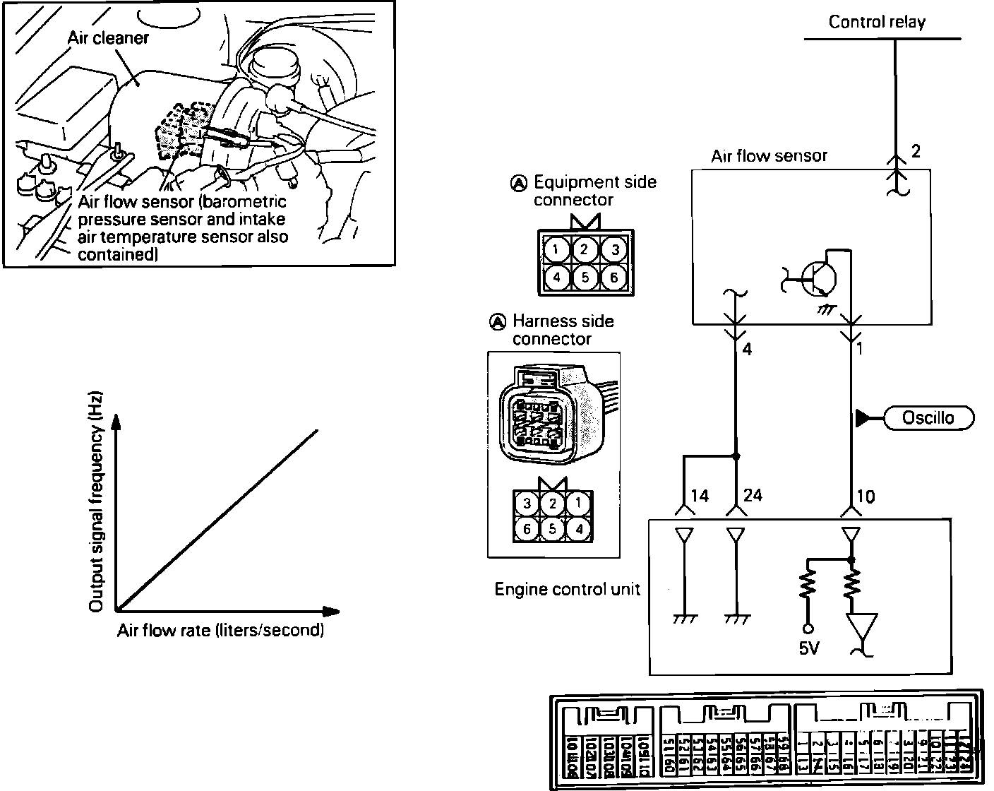 NOTE: If the air flow sensor fails, the intake air volume cannot be measured and as a result, normal fuel injection control is no longer available. However, the vehicle will run using the pre-programmed value.