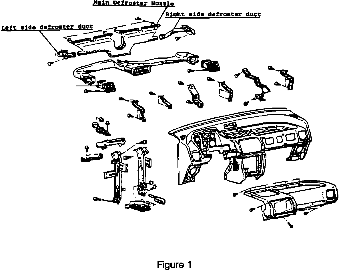 2. Remove the defroster nozzle, left and right defroster ducts and discard. (See Figure 1)