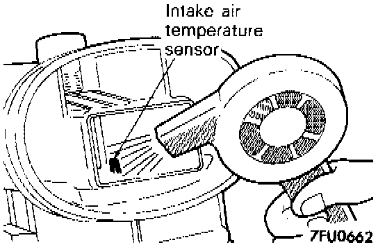 1. Disconnect the volume air flow sensor connectors.2. Measure resistance between terminals 5 and 6.