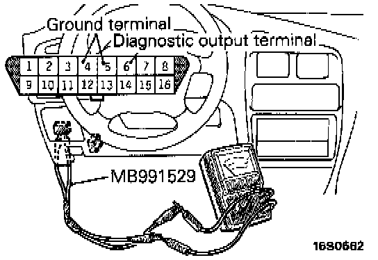 1. Connect an analog voltmeter to the diagnostic output terminal (No. 6 terminal) and the ground terminal (No. 4 or 5 terminal) of the data link connector.