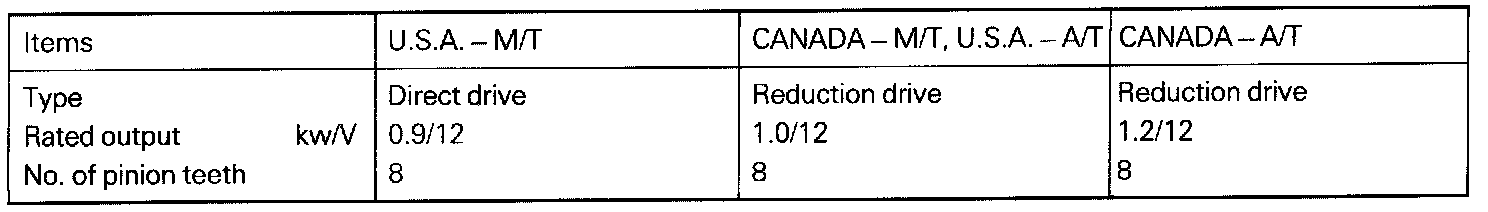 Starter Motor Specifications: