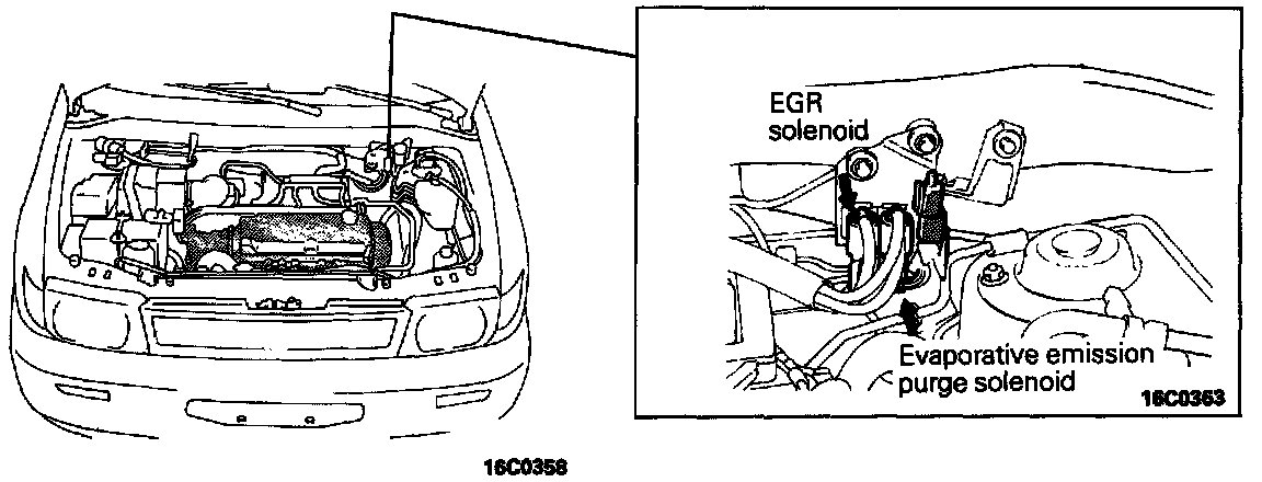 EGR Solenoid, Evaporative Emission Purge Solenoid: