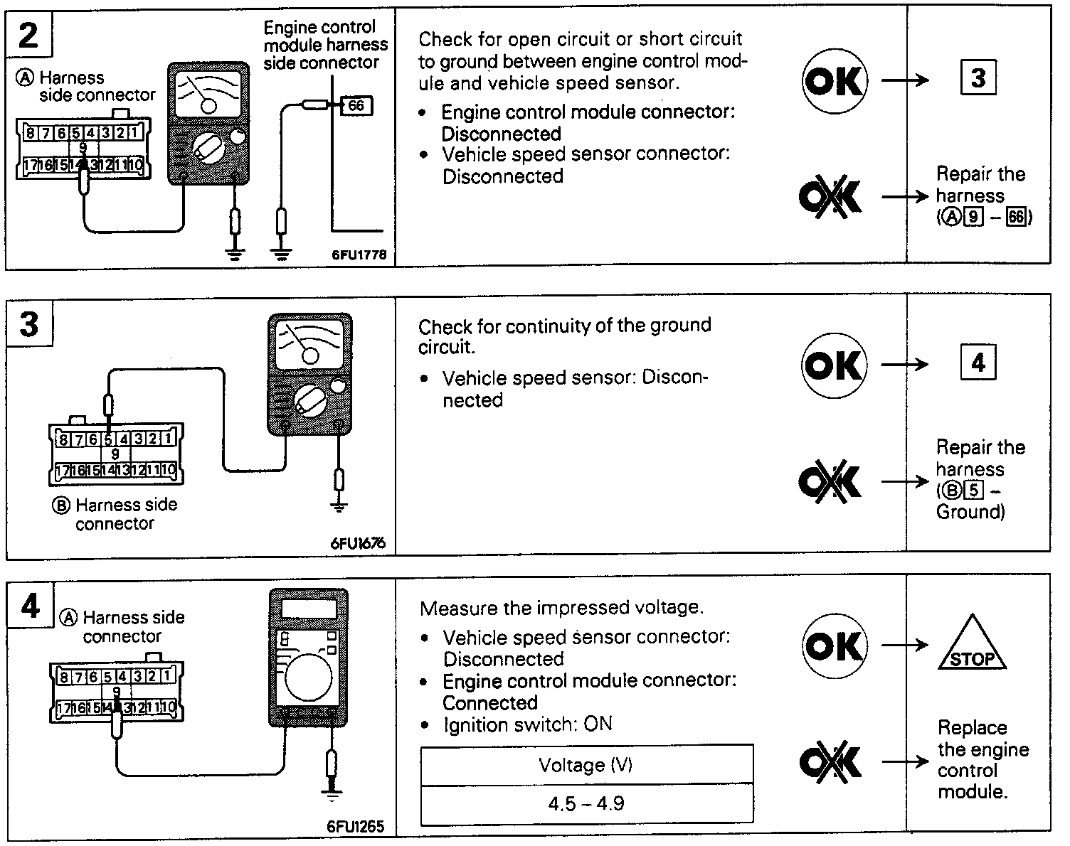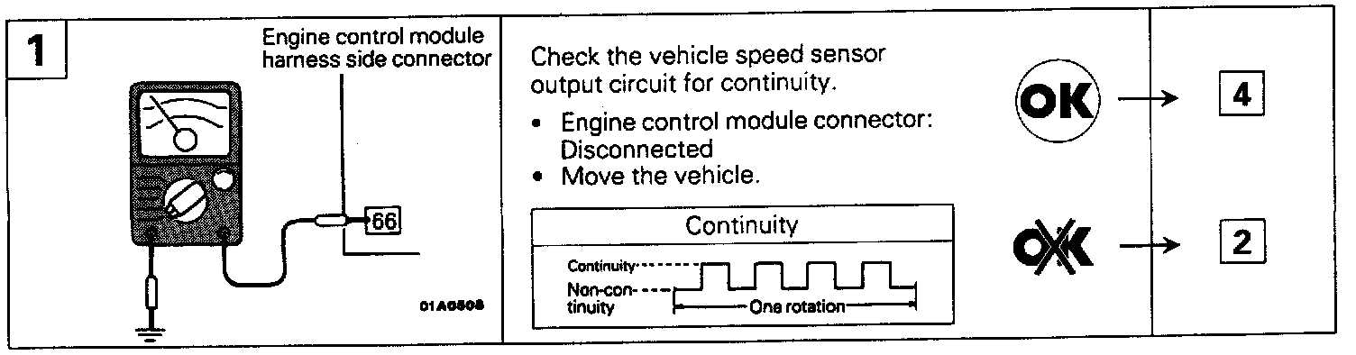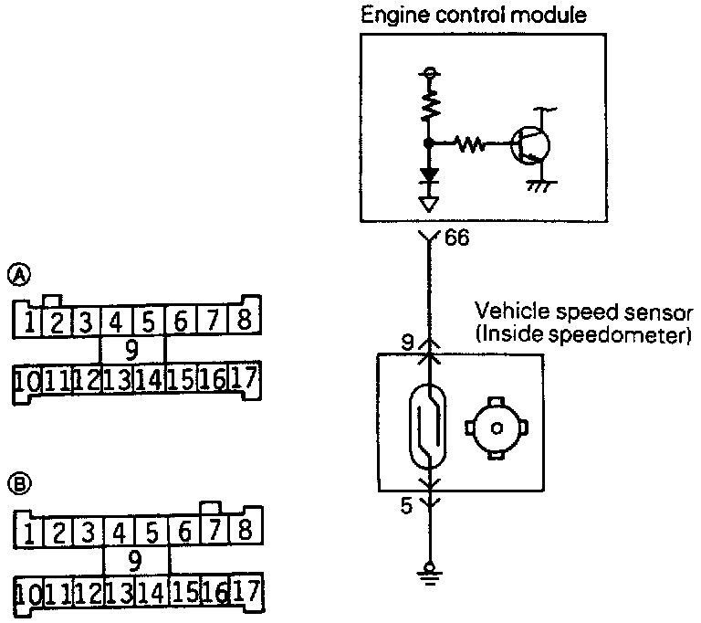 NOTE: If there is an open or short circuit in the vehicle speed sensor signal circuit, the engine may stall when the vehicle is decelerated to stop.Vehicle Speed Sensor: