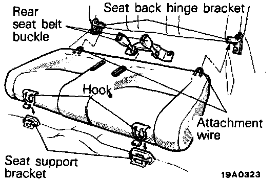 1. Securely insert the attachment wire of the rear cushion into under the hinge bracket of the seat back.