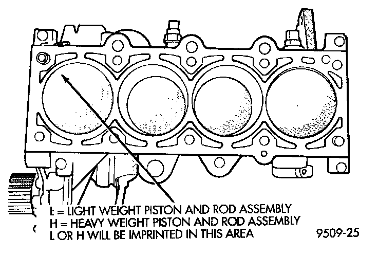 3. Pistons have stamping in the front half of the piston facing towards the front of engine. The stamping is a weight identification for the assembly L is for light and H is for heavy. These assemblies should all be the same weight class. Service piston assemblies are marked with a S and can be used with either L or H production assemblies.