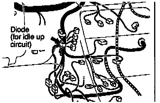 The Idle Up Circuit Diode is located behind the center console, on the left side. It is taped to the wiring harness.