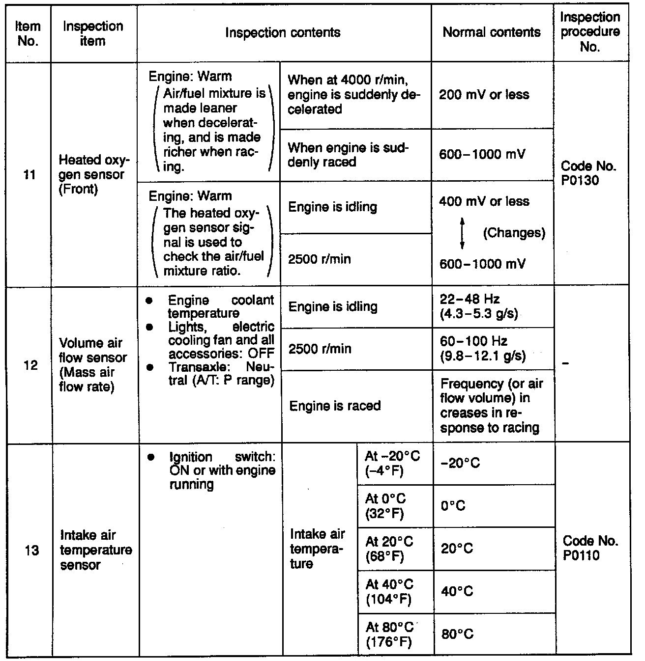 *1. In a new vehicle (driven approximately 500 Km [300 miles] or less), the volume air flow sensor output frequency is sometimes 10% higher than the standard frequency.