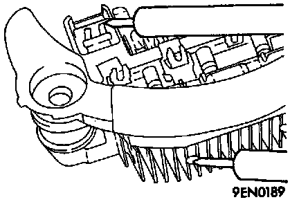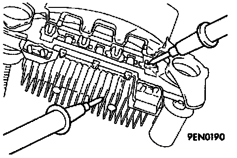 Check three diodes for continuity by connecting an ammeter to both ends of each diode. If there is no continuity in both directions, diode is faulty and heatsink assembly must be replaced.