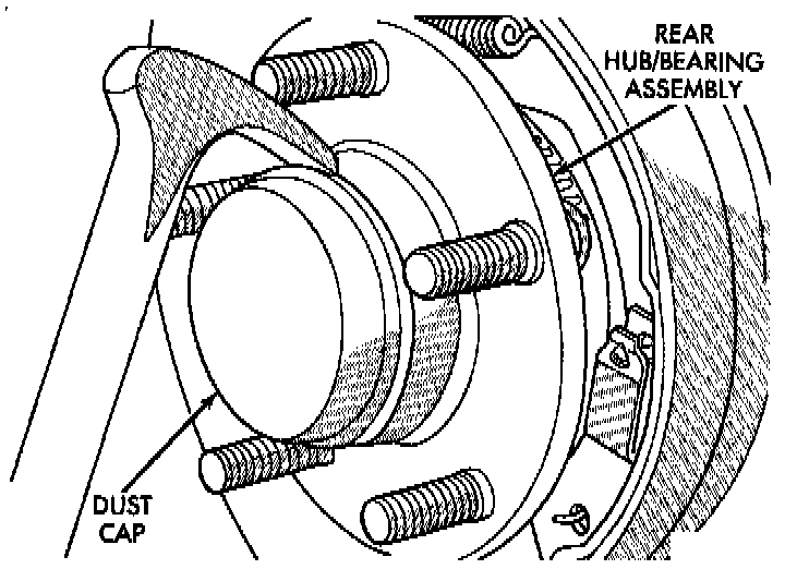 3. Remove rear hub and bearing assembly dust cap.