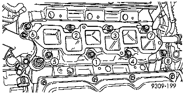1. Install intake manifold with new gaskets. Tighten in sequence shown in illustration to 28 Nm (250 inch lbs.).