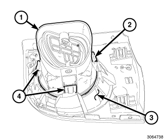 2. Engage the two retaining tabs (1 and 3) that secure the top of the outlet to the instrument panel. Make sure the retaining tabs are fully engaged.