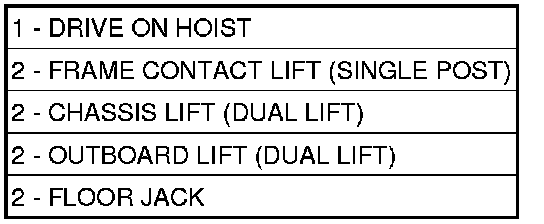 WARNING: The hoisting and jack lifting points provided are for a complete vehicle. When the engine or rear suspension is removed from a vehicle, the center of gravity is altered making some hoisting conditions unstable. Properly support or secure vehicle to hoisting device when these conditions exist. Failure to follow these instructions may result in serious or fatal injury.
