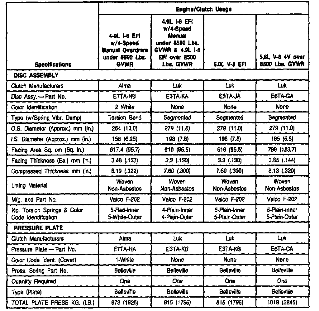 New Process 435 4-spd M/T, Clutch Usage (E/F Series 6.9L, 7.5L):