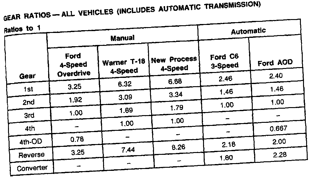 New Process 435 4-spd M/T, Gear Ratios (ALL):