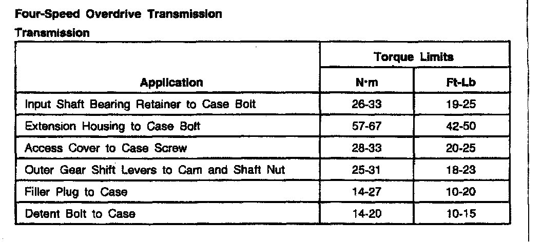 Ford Overdrive 4-spd M/T, Transmission Torque:
