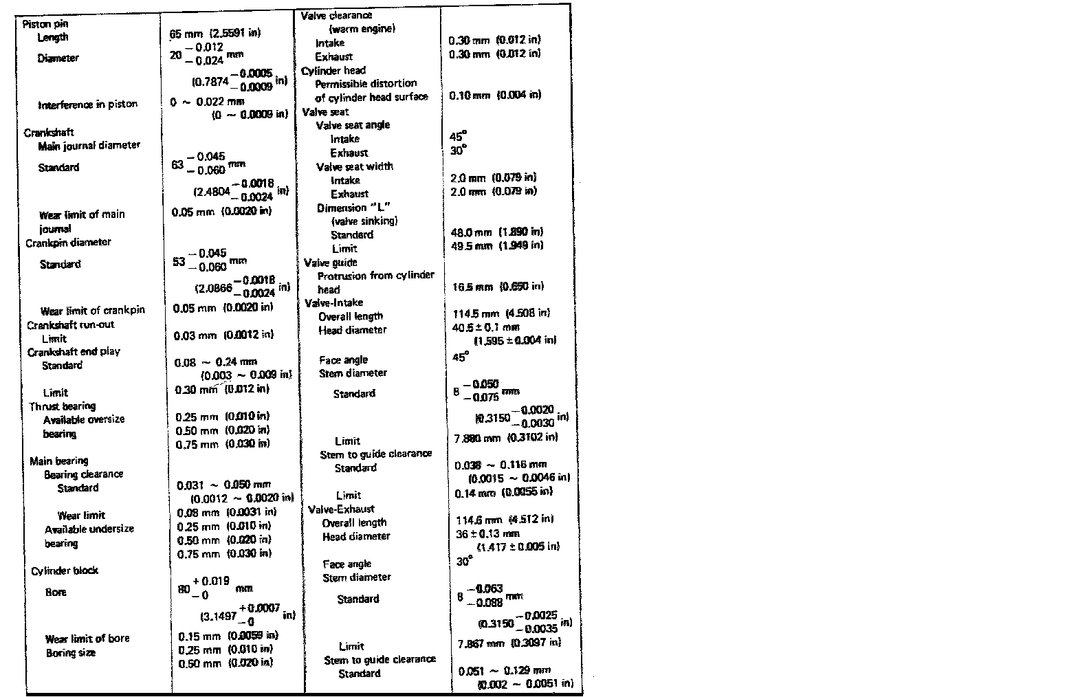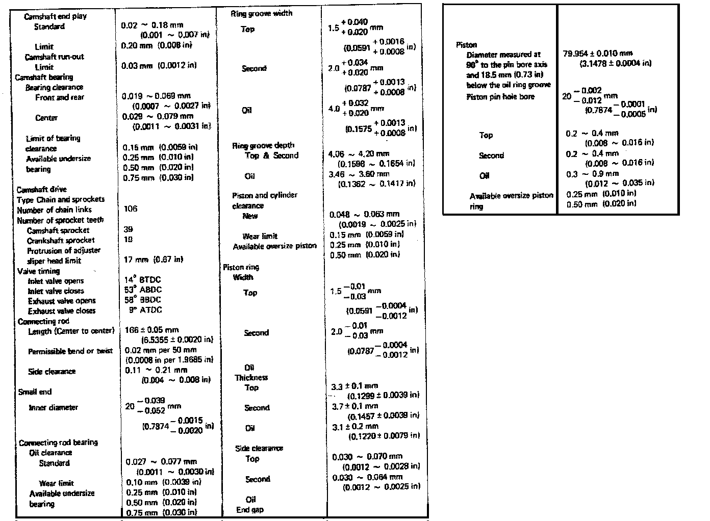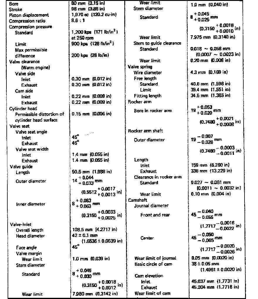 2.0L SOHC Engine Mechanical Data: