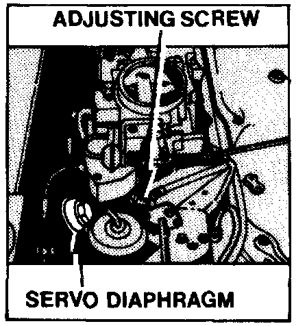 4. Start engine. The engine speed should rise to 1300-1500 RPM. If engine speed is not within specifications, adjust by turning adjusting screw on servo diaphragm throttle lever, Fig. 28.