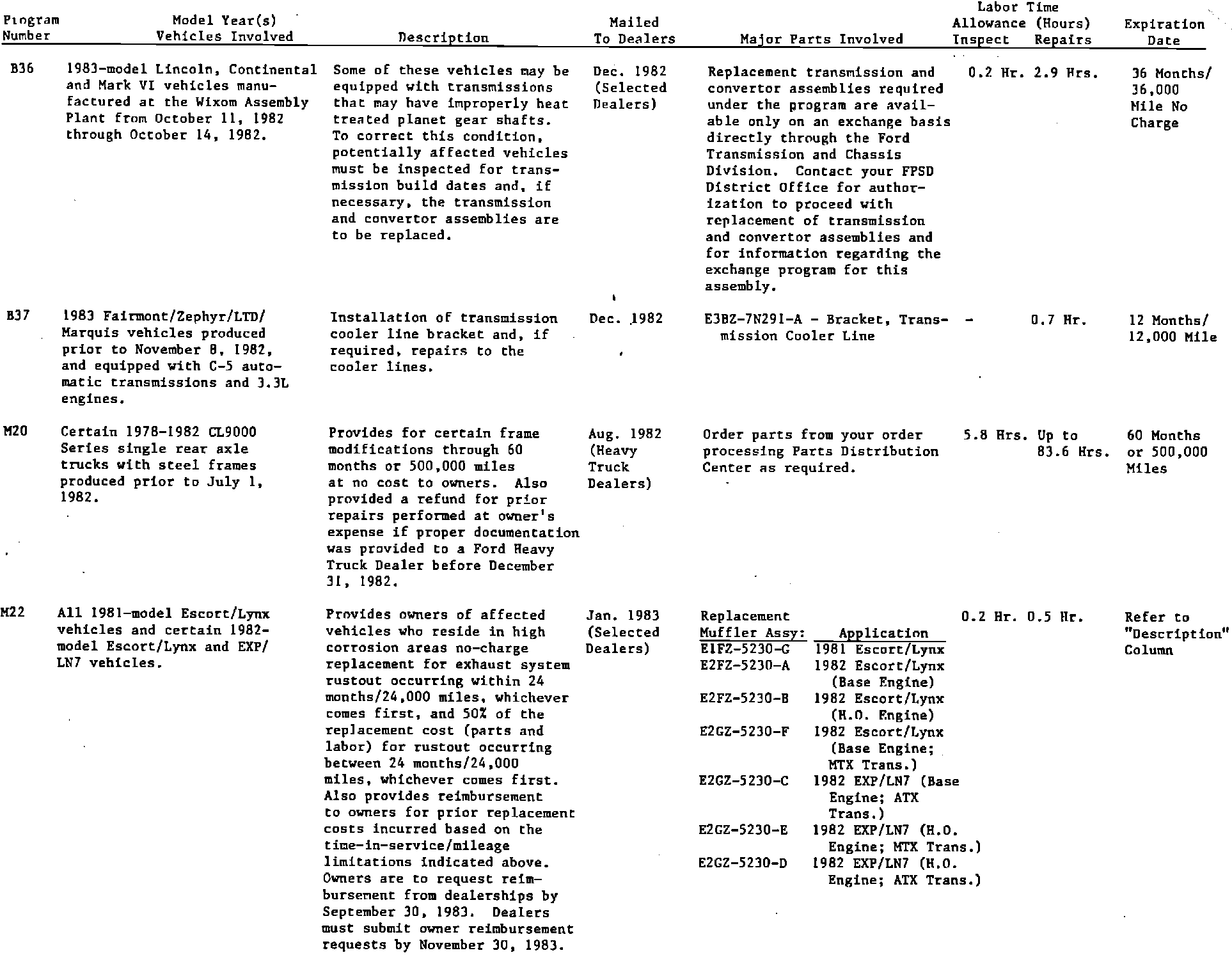 Also, we have included an updated listing of Owner Notification Programs launched from July 1982 to date. Please note that some of these programs had time and mileage limitations and have now expired.